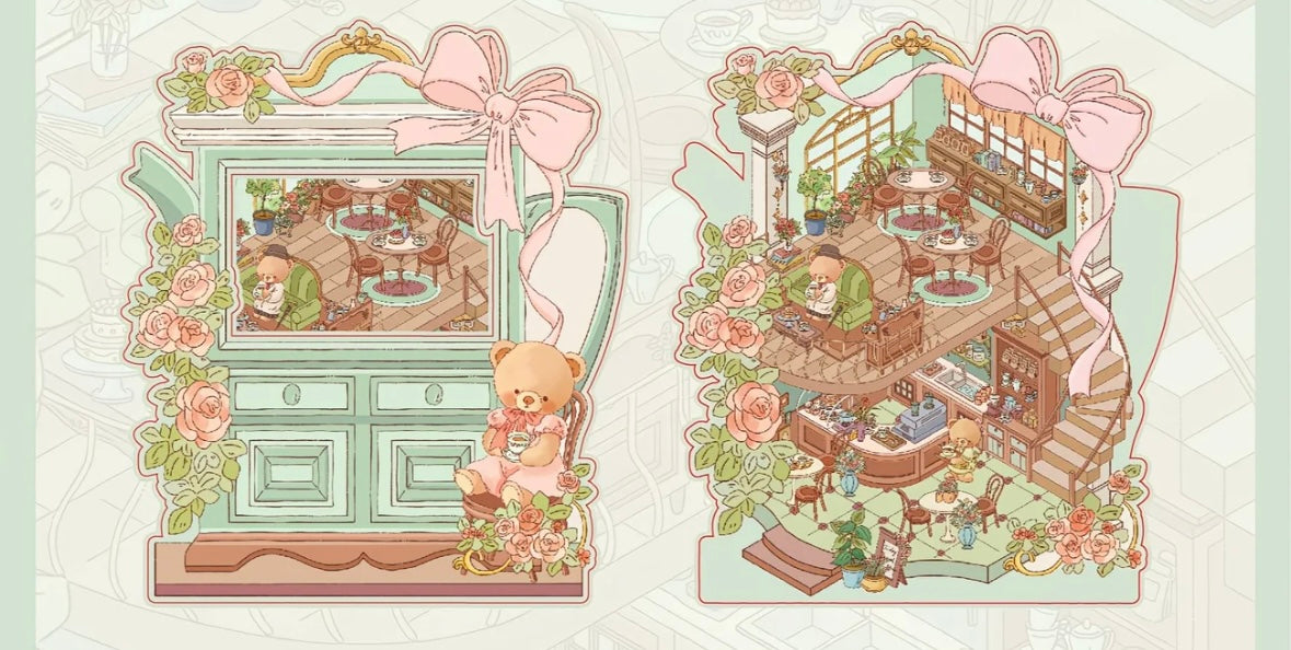 [Hot Selling] Bear Romantic House Series Landscaping Stickers 3D DIY De-stress Puzzle Stickers